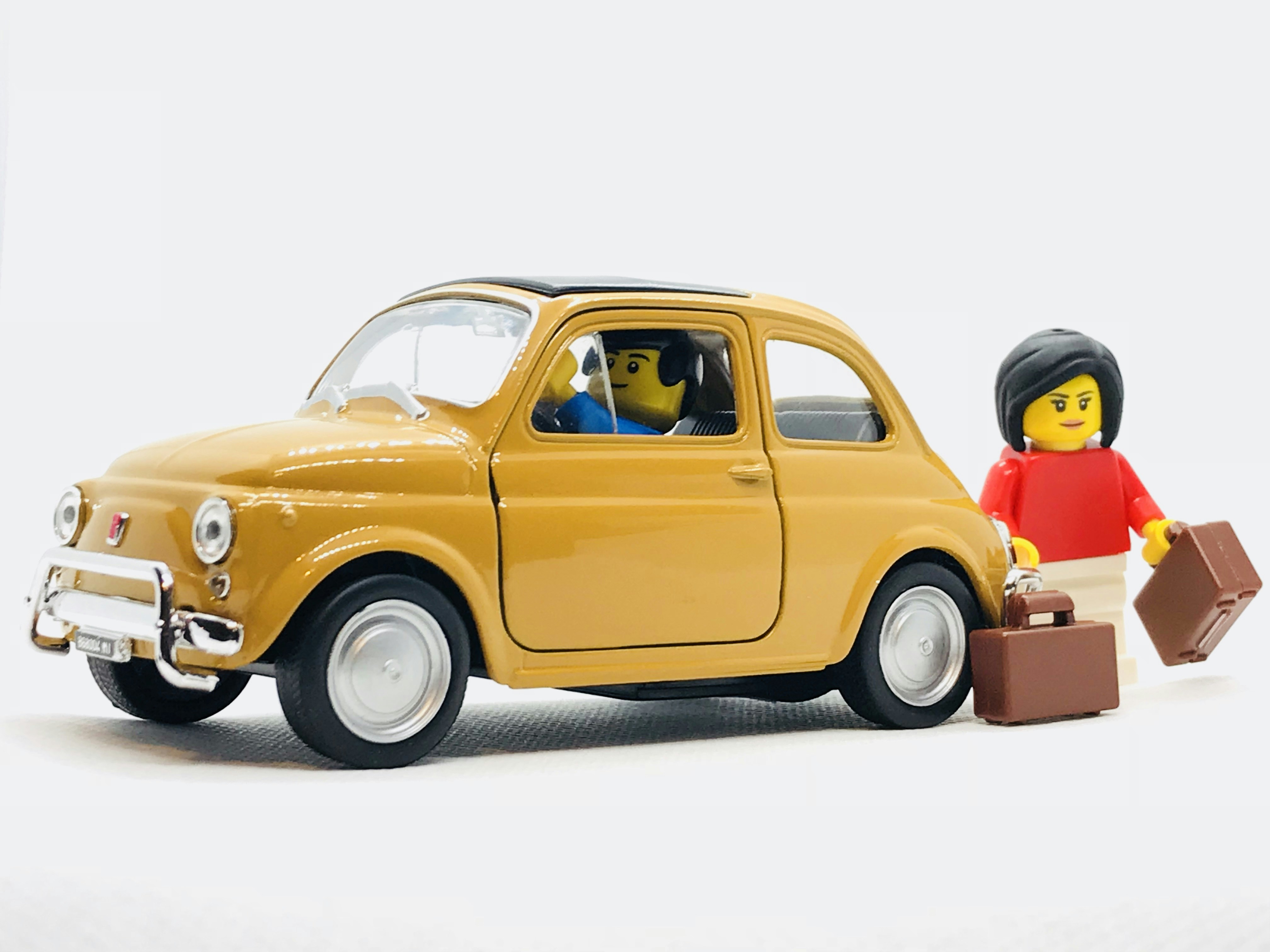 As a certified LEGO (R) Serious PLay Facilitator (R), I recently bought some bricks to start preparing for a workshop in Poland. I usually store all of my toys and brick sets in one place so i tried to experiment with the LEGO(R) set and my diecast models. What i tried portraying is my love for travel, especially road trips together with my girfriend. I am planning to go on a road trip in Italy, discovering all the beautiful areas otherwise hidden from the main and regular tourists. What could better portray this than two puppets loading all the bags in a very Italian yellow Fiat 500.